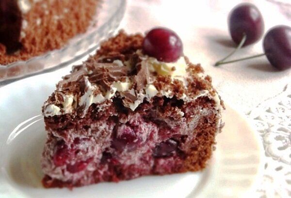 Отличительной особенностью этого десерта является легкий вкус алкоголя: вишни замачиваются на 12 часов в десертном вине. Иногда для замачивания ягод используют напитки покрепче – коньяк или бренди. Но, думаю, достаточно будет легкого сладкого вина, поскольку торт чаще всего предназначается для семейного меню, а замоченные в легком вине фрукты вполне можно есть даже детям.