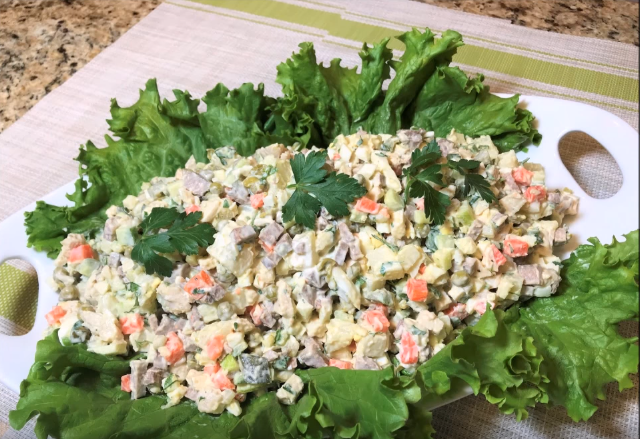 Салат СТОЛИЧНЫЙ. И что может быть вкуснее? Замечатель ный, сытный и праздничный салат из прошлого. Готовьте с удовольствием! ЯЗЫК ГОВЯЖИЙ. Как приготовить https://youtu.be/oiXYYL0AG1c МАЙОНЕЗ ДОМАШНИЙ Провансаль https://youtu.be/ofeG16X9bU4 Кол-во ингредиентовы в салат добавляйте произвольно по вкусу. 300 гр куриная грудка 250 гр язык отварной говяжий 4 яйца 300 гр отварной картофель 130 гр свежий огурец 1 крупная морковь 2 мариновванных огурца( соленых) 150 гр 1/2 банки зеленый горошек 0.5-1 зеленое яблоко+ 1 ч.л лимонного сока 120 гр + майонез домашний + 2 зубчика чеснока, черный перец 2 ст.л петрушка салатные листья.