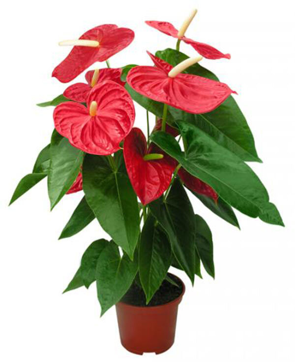 Антуриум благоговеет к сильному полу и дарит его представителям мужскую силу. Холостым мужчинам растение также приносит успех у женщин, женатым – счастливую семейную жизнь в дом. Если вы – девушка незамужняя, завести это растение стоит хотя бы из-за его красоты и, конечно, для будущего семейного счастья. Цветок имеет крупные темно-зеленые листья сердцевидной формы, словно подвешенные на длинные узкие черенки. Если за растением надлежащим образом ухаживать, оно цветет круглогодично. Цветок антуриума – пушистый белый или желтый колосок в красно-розовой (см. фото) или белоснежной каемке. Максимальный рост комнатного растения – 80 см. Листья могут вырастать до 40 см в длину, цветки – до 20 см. Долгожителем его не назовешь: цветок умирает через 3 года. Важно! Антуриум очень ядовит, поэтому необходимо ограждать от него маленьких детей и животных. «Мужской цветок» тепло- и светолюбивый, что и не удивительно: его родина – субтропики Центральной и Южной Америки. Чтобы антуриум чувствовал себ