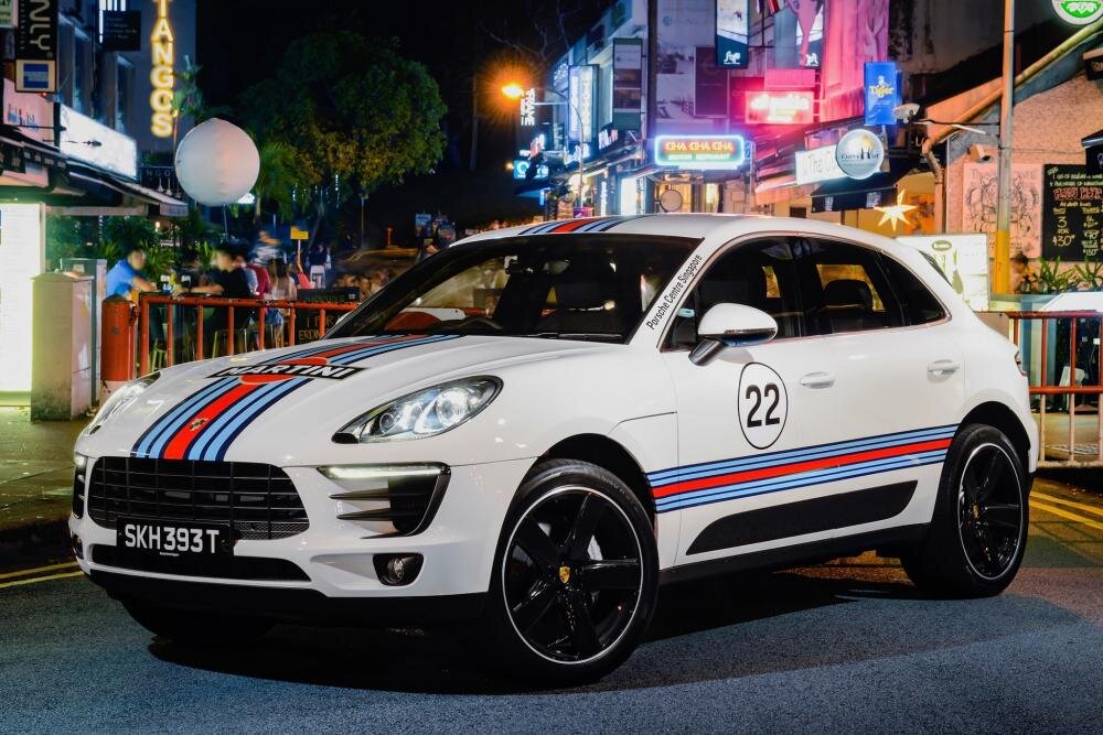 Porsche не стесняется своих успехов в автоспорте, тем более, что их у нее за всю историю было больше, чем у любого другого производителя В рамках бесконечного празднования своих спортивных побед, Porsche раскрасил пять кроссоверов Macan в исторические спортивные ливреи и отправил их гонять по улицам Сингапура. Martini Первый Macan носит одну из самых узнаваемых ливрей - сине-красно-серебристую цветовую схему Martini Racing. Porsche является одним из многих, кто использует такую ливрею, но именно во многом благодаря немецкому бренду она вошла в историю. Партнерство Porsche и Martini ведется с 1970 года, когда 917 в цветах Martini Racing гонял по Хоккенхаймрингу. Rothmans Гоночная ливрея Rothmans впервые появилась на Porsche 956 в гонке 24 часа Ле Ман в 1982 году. Позднее эти цвета перешли на Porsche 962, раллийные 911 и быстро ушедшие в небытите Porsche 961. Pink Pig Этому Macan досталась ливрея, которую носил всего один автомобиль Porsche. Выглядит она как схема раскроя свиной туши, к