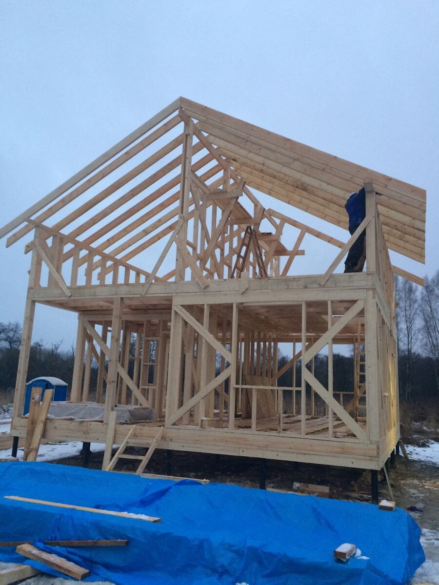 6 января первый рабочий день в новом 2018-м году. Приступили к установке стропил на крышу.