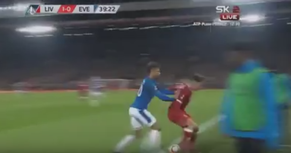 Во вчерашнем матче Ливерпуль - Эвертон игрок Жвертона Холгейта вытолкнул на трибуны игрока Ливерпуля - Роберто Фермино