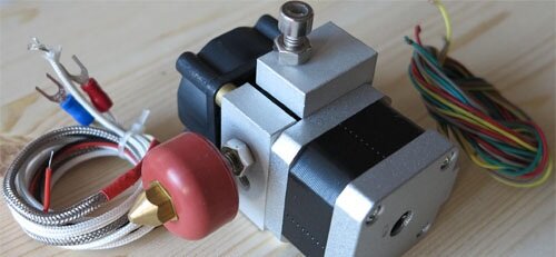 Монтаж печатающей головки 3Д принтера на фрезерный ЧПУ, дает безграничные возможности использовать фрезерный станок или печатать 3Д модели из пластика. В итого получаем 3D ЧПУ способный воспроизводить изделия как из нити методом печати так и из дерева методом фрезеровки. Для управления процессом используются стандартное ПО MACH3, CNC USB Controller и др. В 3D печати используется файл формата STL, который воспринимается всеми программами 3D принтеров. Для конвертации в STL можно использовать Soildworks, google Sketchup и другие программы. Как правило в экструдерах 3Д принтеров используются терморезисторы 100К с нелинейной характеристикой. Для работы с таким датчиком нужно использовать управляющую электронику от 3Д принтера. Что бы использовать обычные доступные терморегуляторы, датчик температуры необходимо заменить, например, на термопару типа К, как показано на изображении внизу. И любой терморегулятор, поддерживающий работу с термопарами типа К, например «ОВЕН 2ТРМ1-Н.У.РР», стоим