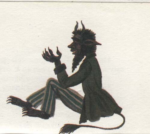 Пожрать, конечно, у тебя ничего нет. Я так и знал. Ладно, я с собой прихватил. Вот колбаса ливерная. Чего морщишься? Мы черти очень ее любим. А вы спешите кошкам скормить.