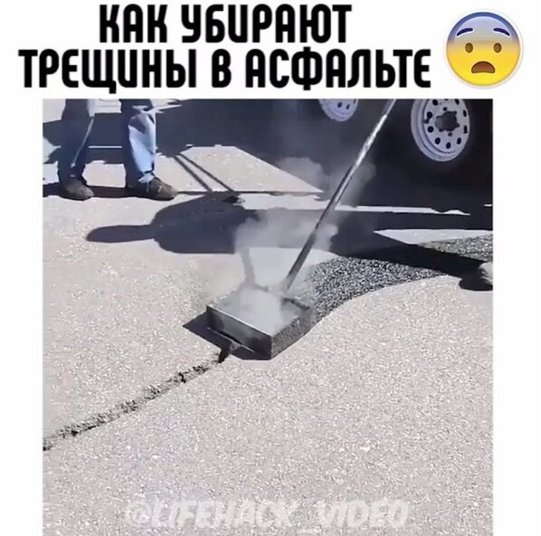 Это гениально! Кто нибудь, когда нибудь видел как убирают трещины в асфальте? Хотя откуда, ты же в России живешь, у нас они только появляются! Но по крайней мере благодаря этому видео мы можем наблюдать этот волшебный процесс.
