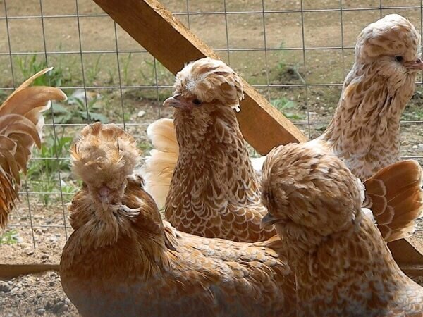 За генетическую основу были взяты представители Русских Павловских, и именно от них английская красотка унаследовала бороду и хохолок. В хозяйстве от нее толку мало, поэтому выращивают ее исключительно в декоративных целях.