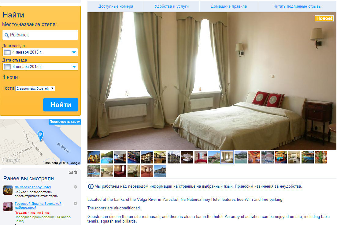 Однажды столкнулся с необычной ситуацией на booking.com, которую можно охарактеризовать как явное мошенничество. Я сам не раз бронировал отели через Букинг и рекомендовал его друзьям. Но, оказывается, что всё не так уж однозначно. Доверяй, но проверяй. Считаю, что будет не лишним рассказать о случившемся и предупредить всех. Началось всё с того, что коллега заблаговременно озаботилась вариантами проведения новогодних каникул. Ей с мужем нравится отдыхать зимой где-нибудь в Ярославской области, поэтому она искала что-нибудь на берегу Волги. Внимание привлёк отель «На Набережной» в поселке Константиновский. Номера на фотографии показались просторными и комфортными. Месторасположение на карте тоже оказалось практически идеальным. Уютные корпуса на берегу, недалеко цивилизация. Что ещё нужно для хорошего отдыха? Надо брать. Еще одна удача: есть свободные номера по отличной цене. До завершения бронирования остался один шаг, но у Кати возникло желание уточнить некоторые вопросы по отелю, в