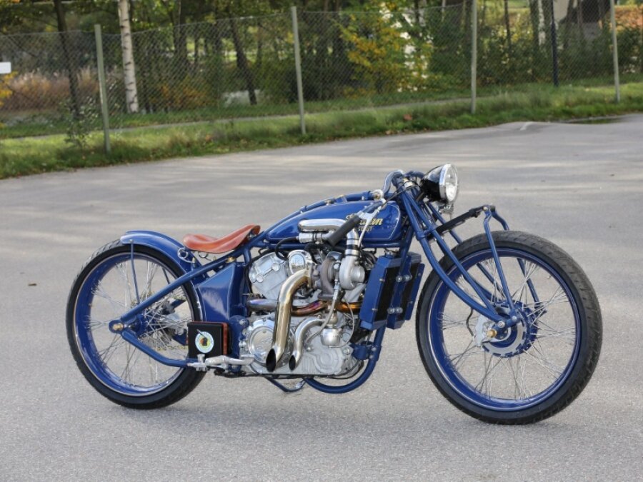 На первый взгляд, Indian Super Scout - это отреставрированная оригинальная модель легендарного мотоцикла 20-х годов. На самом же деле, от оригинальной модели в этом проекте остался разве что облик. БОЛЬШЕ ФОТО: http://in-moto.ru/rubriki/kastom-zona/турбо-боббер-indian-super-scout Трехсоставную стальную раму пришлось полностью разрабатывать с нуля, ведь в ней теперь красуется мотор 1133 см3 от современного Indian Scout, который, помимо всего прочего, кастомайзеры изрядно "разозлили" его, установив турбину Garret 25, что позволило добиться мощности около 200 л.с. на колесе. Андерс Лундгрен (один из создателей Super Scout) говорит: “мы хотели построить мотоцикл, который был бы связан с историей побед Indian в гонках начала 20-ого века, и в то же время мог похвастаться технологиями из современной эры. Модель Scout была идеальным выбором, и мы решили назвать его Super Scout в честь старых моделей, которые были почти непревзойденными на гоночных трассах того времени.” БОЛЬШЕ ФОТО: http://i