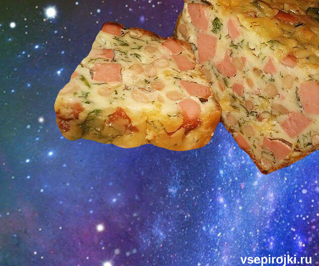Я не знаю, как это точнее можно назвать. Колбасный пирог, колбасная запеканка, в итоге вообще назвал «кексом».