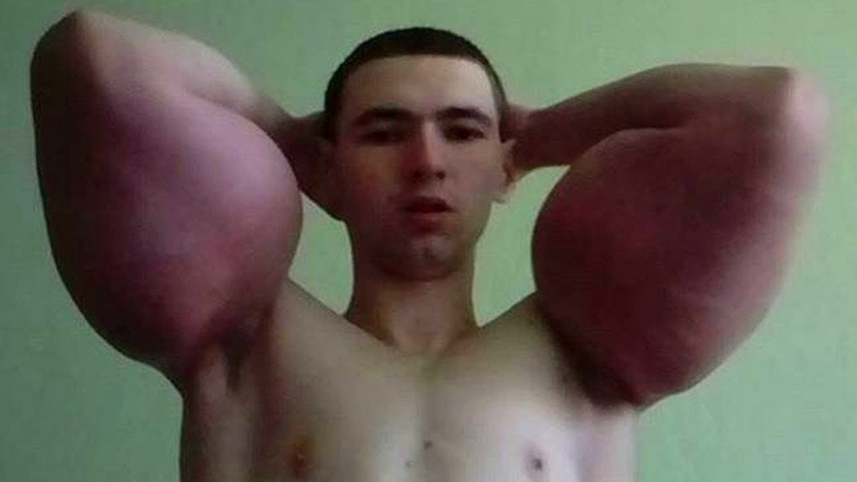 Эксперт - о будущем 60-сантиметровых бицепсов Кирилла Терешина Кирилл Терешин "накачал" бицепсы в 60 сантиметров за два месяца. Он почти не занимался спортом, а вместо этого делал себе инъекции препарата "синтол" - масла, которое заставляет мышцу раздуваться. Медицинское обследование рук Терешина, проведенное в рамках телепрограммы Андрея Малахова, показало: внутри мышечной ткани есть гнойные воспаления. На фотографиях "руки-базуки" - как называет их сам блогер - выглядят нездоровыми и красными. Канал FitnessGuru обратился к эксперту - хирургу общей практики Александру Ильину, чтобы узнать: действительно ли "руки-базуки" скоро взорвутся? Что будет происходить с ними дальше и как долго они проживут? Взорвутся ли руки-базуки "Руки-базуки взорвутся! Это не будет взрыв в его привычном понимании - когда все лопается, и летит кровь. Но это будет мощнейший воспалительный процесс: возможно, будут надрывы кожи, гной будет частично выходить на поверхность", - говорит Александр Ильин. Уже сей