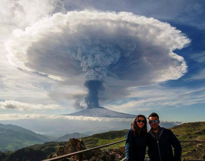 Добрый день, дорогие домоседы. Жить как на вулкане – этот фразеологизм означает жить в постоянном беспокойстве, напряжении, постоянном ожидании неприятностей. Жители итальянского острова Сицилия живут на вулкане в прямом смысле. Ведь здесь находится самый известный и большой вулкан Этна в Европе! Имеющий форму эллипса в основании и конусообразную вершину, вулкан с названием Этна расположился на огромной площади и занимает почти полторы тысячи квадратных километров. Высота вершины периодически меняется, этому способствует вулканическая активность вулкана. В недавнее время она составляла примерно 3370 метров. Название вулкана произошло от имени древнегреческой нимфы Этны. Согласно мифологии, она жила у подножия горы, внутри которой был замурован плененный Афиной гигант Энкелад. И во время его попыток освободиться из кратера доносится его мощное дыхание, вырывается пар и тучи пепла. Другая мифологическая версия существования вулкана – он является кузницей бога огня Гефеста, а внутри горы