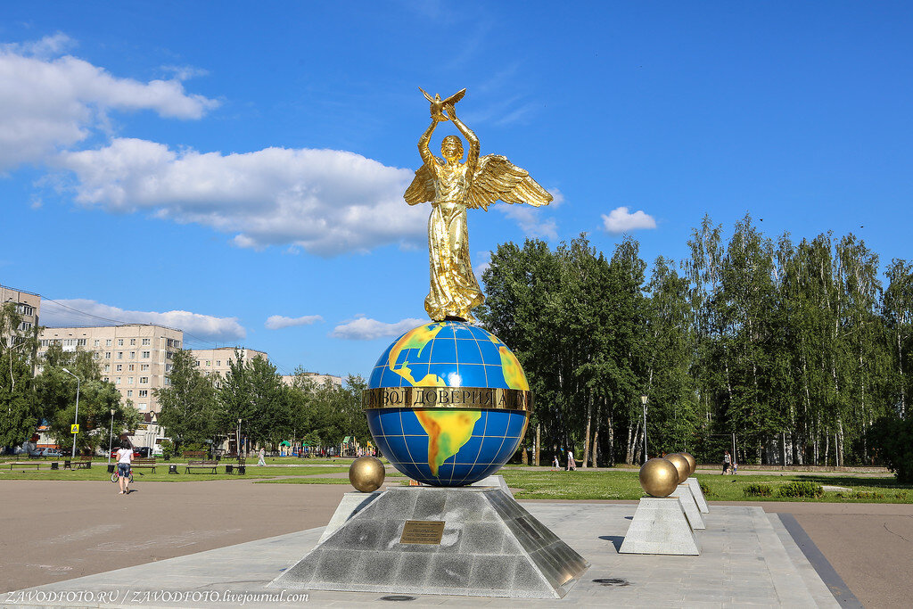 Памятник "Мирный атом" рядом с Информационным центром Смоленской АЭС. В знак уважения к тем, кто сделал свой вклад в развитие атомной энергетики в целом и в частности на этой земле, а также гордости за Смоленскую АЭС в 2014 году здесь был установлен этот памятник. Он представляет собой светящийся земной шар, над которым возвышается металлическая скульптура богини Ники.