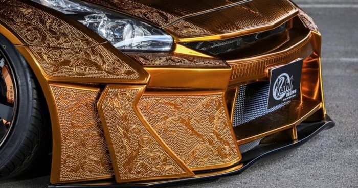 Уникальный Nissan GT-R покрыли ручной гравировкой по золоту