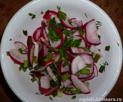 2. Укроп и петрушку рубим и отправляем к редиске.