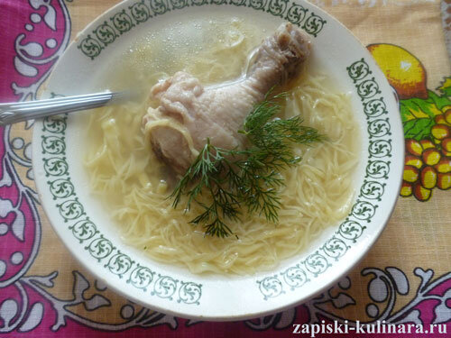 9. Теперь можно бросить лапшу в заранее приготовленный куриный бульон . Поварить