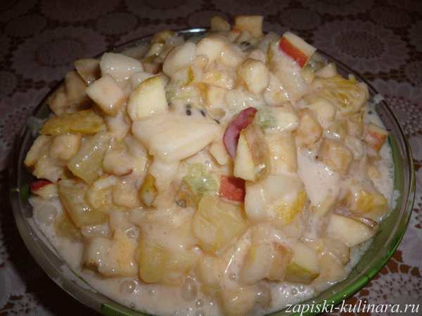 Фруктовый салат – это наверное, один из самых полезных десертов. Вариантов приготовления фруктовых салатов множество: фруктовый салат с йогуртом и сгущёнкой, со сливками, с мороженым, со сметаной, с медом