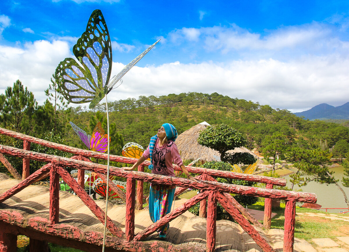 Азия- неисчерпаемый источник вдохновения. На каждом шагу мотивы, которые уже видел в кино, компьютерных играх и адских набросках дизайнеров. В нашем понятии фрики всех мастей бродят по улицам. Это- просто. Просто будь собой. И в один из дней я вышла на улицу волшебным счастливым гномом;) Новый образ совпал с поездкой в Далат. Это город в горном Вьетнаме. Высота около 1500м, прохлада и красота. В один из дней мы сходили в Парк любви, он же- парк цветов. По поводу моды, надо наснимать отдельно. Девушка в белой водолазке, потом сверху черной футболке и еще сверху в желтой ночнушке с кружевом. И в кедах. < Но, я тоже удалась. " Белые"на меня оборачиваются;) Так что, предлагаю вашему вниманию прогулку в садово-парковой архитектуре. Это -не я;)))) Парк полон всяких изображений любви. И, конечно, сюда приходят влюбленные фотографироваться;) Скульптурами, я что-то не очень впечатлилась. Ландшафт постепенно переходит в естественный. Очень прикольно. Гулять можно долго... И на этом месте мы з