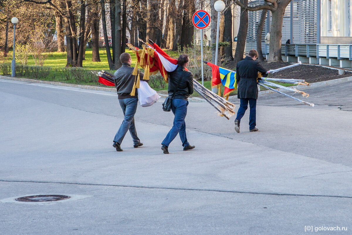 Наблюдать за подготовкой к военному параду, иногда интереснее, чем смотреть сам парад. На фото, подготовка к действу в Нижнем Новгороде. _ Наверняка владельцы заведения были бы рады такому количеству посетителей. Мощь! _ Проверка перед маршем. Танк в закатном свете. _ Девушка и танк. _ Военный оркестр. _ Памятник Валерию Чкалову. _ Нижегородский кремль и пулемёт. Старое и новое. _ _ Накладки на гусеницы для сбережения асфальта от разрушения. _ _ Тыдыщ! _ Велосипедист. _ Джип и Кока-Кола. _ Военный хор. _ Вот так. Странные знаки на въезд в Нижегородский кремль. Ничего нельзя, но если хочется тогда можно.