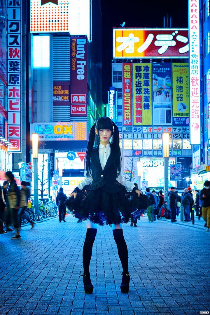 В подол юбки вшит специальный светящийся материал, вероятно, светодиоды, которые позволяют рассмотреть ноги девушки в темноте. Более того, подсветка управляется гироскопами, которые меняют подсветку в зависимости от позы или движений.