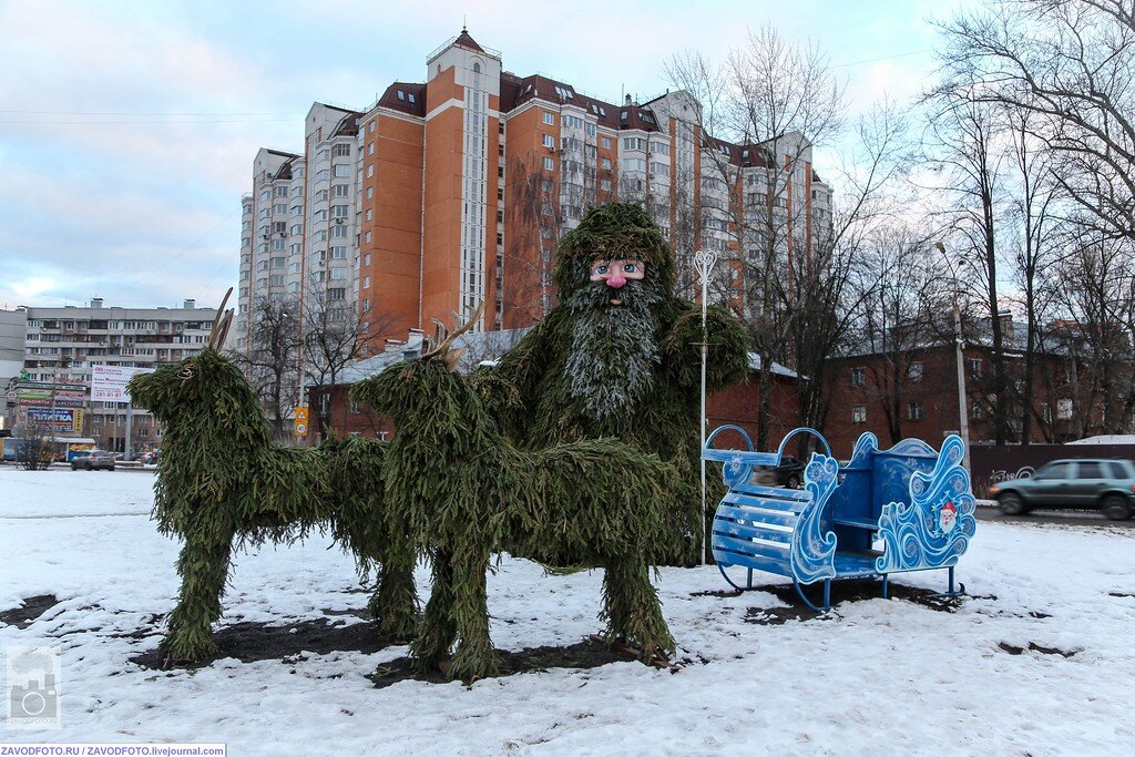 В июле этого года я уже гулял по улочкам славного города - наукограда. Сегодня я хочу представить Вашему вниманию "зимний вариант" прогулки по Королеву, более промышленный. Цветочные композиции поменялись на еловые, зелень на снег, а настроение - на новогоднее...