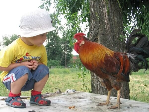 Когда на подворье заводится пернатый террорист, страдают не только куры. Взрослому человеку хватит силы и скорости реакции, чтобы защититься от драчуна или же минимизировать нанесенный ущерб, то дети могут серьезно пострадать от нападения.