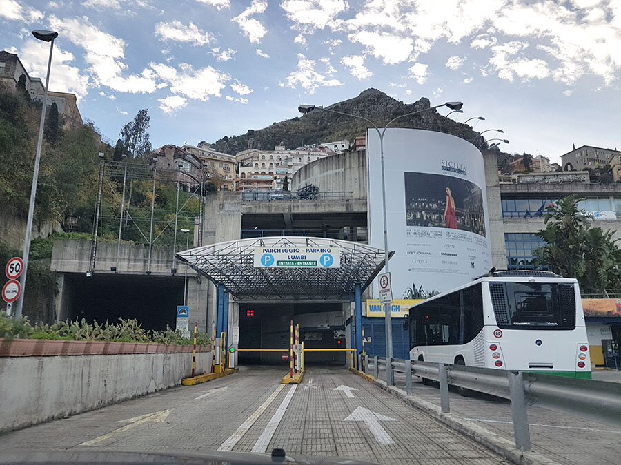 Таормина находится на восточном побережье Сицилии, на склоне горы Тауро на высоте 206 метров над уровнем моря. Город исторический, обожаемый туристами, и есть, за что. Вот только на машине туда въехать... невозможно. Об этом мы знали. Поэтому, увидев парковку, отправились оплачивать место...