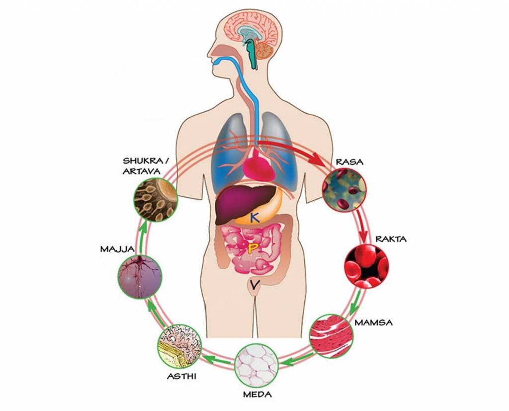 Санскритское слово дхату означает «ткань», или то, что создает и поддерживает органы нашего тела, иначе говоря — строительный материал тела. Человеческий организм состоит из семи дхату. Дхату поддерживают функционирование различных систем и играют очень важную роль в развитии и питании тела.