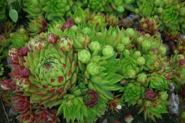 Молодило – суккулентное растение, отлично подходящее для каменистого садика или альпийской горки. Вырастить его несложно, а эффектный вид цветника вам будет обеспечен. Латинское название молодила (Sempervivum) в переводе означает «всегда живой». Эти многолетние растения активно размножаются детками – небольшими розетками, которые образуются на концах столонов, выходящих из пазух листьев материнской розетки. У сформировавшихся деток столоны отмирают, и молодые розетки укореняются на некотором расстоянии от материнского растения. В благоприятных условиях молодило быстро образует плотные дерновинки. Этот многолетник относится к монокарпическим растениям – он цветет один раз в жизни, а затем отмирает. Благодаря большому количеству деток пустоты в плотном ковре молодила быстро затягиваются.