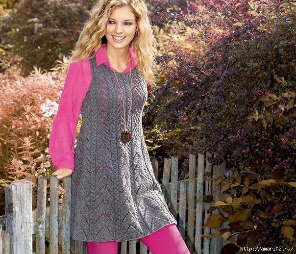 Такой сарафан, связанный спицами - отличная вещичка на каждый день в прохладную погоду. работа выполняется спицами очень просто. Узор не сложный и вяжется быстро. Размеры