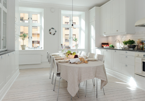 Среди многообразия цветов, которые можно применить в дизайне интерьера кухни, особое место занимает белый цвет. Белая кухня – это одновременно празднично, нарядно и, в то же время, идеально чисто. Белые кухни всегда привлекательны, и в любом стилевом исполнении смотрятся красиво. Сегодня мы предлагаем вам подборку фото белых кухонь разных стилей, возможно, вы почерпнете какие-нибудь идеи для своего интерьера. Конечно, стильные кухни отзывы о которых вы можете прочесть в интернете, могут быть совершенно любого цвета, но сегодня речь о белых кухнях, как о современной тенденции. Вероятно, истоки нашей любви к белым кухням нужно искать в скандинавском минимализме и классических английских интерьерах: в обоих этих вариантах белый интерьер кухни – это традиция. Несмотря на то, что белая кухня может показаться маркой, современные материалы позволяют без труда очищать поверхности, так что ваша белая кухня всегда останется чистой после пятиминутной поверхностной уборки. Подборка фото белых кухо