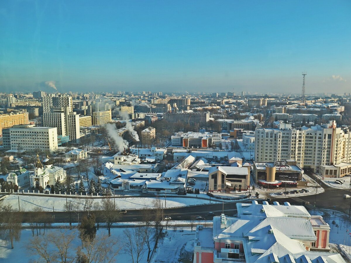 Вид на ул. Сторожевскую 23-этажное здание на Сторожевке. Многие в городе считают, что это здание искажает очертания исторического центра Минска и «раздавило» Троицкое предместье.