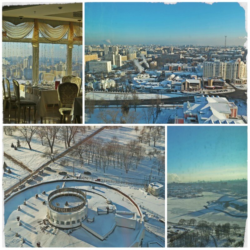 С площадки летом, а зимой из ресторана "Панорама" открывается вид на Троицкое предместье, Верхний город и соборную площадь, Остров Мужества и Скорби (Остров слез) – а также на новые здания бизнес-центров.