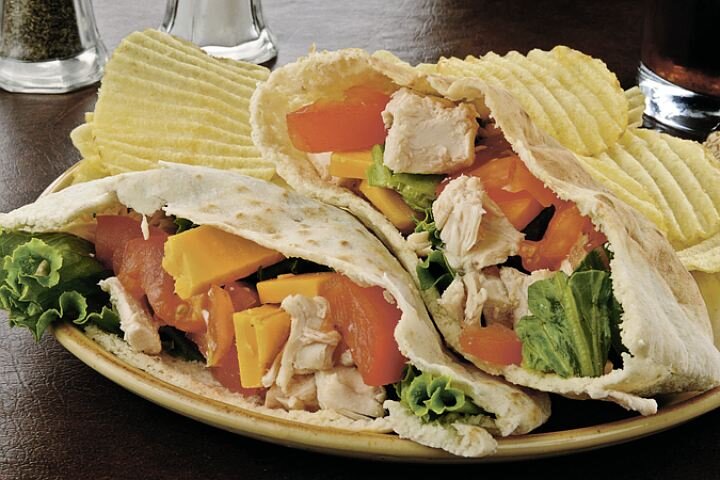 Нечто вкусненькое, что можно приготовить быстро, взяв за основу обычный хлеб Оксана КАСАТКИНА Пита «Меж двух огней» Пресная лепешка с пустой серединкой, пожалуй, самая гениальная заготовка для бутерброда. Имея под рукой упаковку питы, можете быть уверенными, что голодным никто не останется. Закладываем внутрь все, что есть под рукой, и можем считать себя автором собственного рецепта. НАДО: на 3 питы - 250 - 300 г отварной куриной грудки · 1 крупный свежий помидор · 1 болгарский перец · кусочек острого перца · 1 небольшая красная луковица · небольшой кусочек сыра (около 50 г) · несколько ложек майонеза · листья свежего салата. ГОТОВИМ: 1. Куриную грудку нарезаем тонкими полосками. Лук - полукольцами, помидор и болгарский перец - кубиками, острый перец - колечками, чеснок пропускаем через пресс. 2. Сыр натираем на терке, смешиваем с майонезом. Сырную массу добавляем к курице и остальным овощам. Все перемешиваем. Да, не очень красиво получается. Но нам на это не смотреть. Мы это спрячем