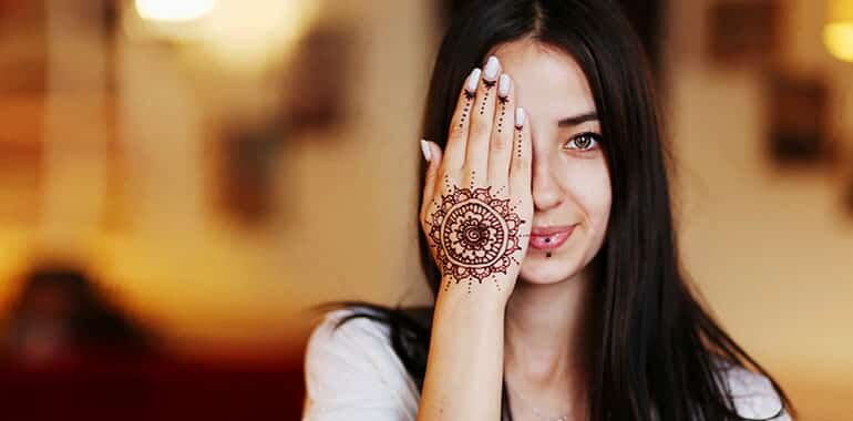 В Индии для создания мехенди используется природный краситель хна, который добывают из листьев дерева лавсонии. Это делает роспись не только эстетически привлекательной, а и безвредной для организма. Также, хна известна своими гипоаллергенными и антисептическими свойствами, что благотворно влияет на кожу, заживляя трещины и раны, а также делает кожу мягче.