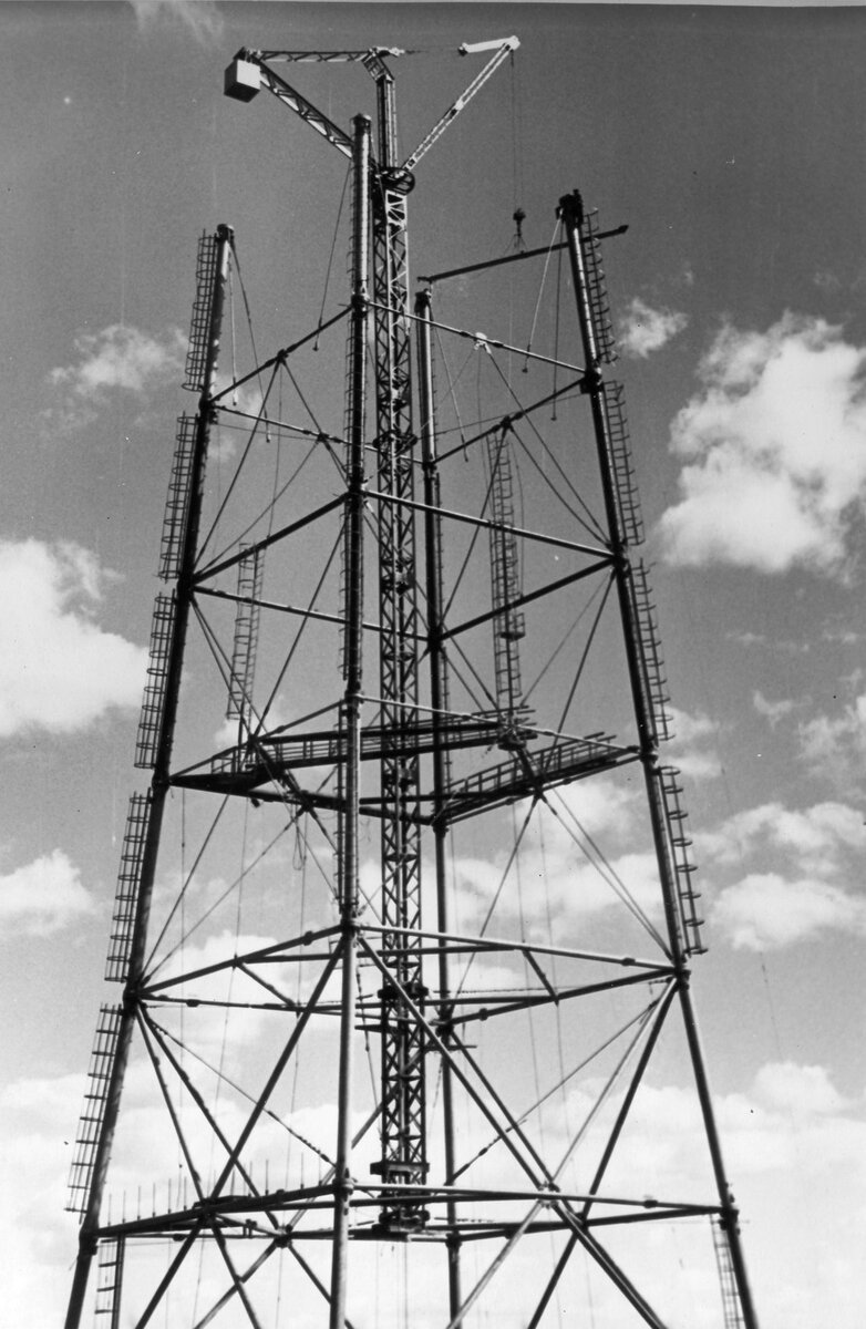 Работы по строительству башни начались в 1959 году. Через два года в 1961-м сооружение высотой 192 метра (высота башни сегодня-196 метров), было построено и введено в эксплуатацию. из ист. справки: В декабре 1961 г. решением Пермского облисполкома была открыта Березниковская студия телевидения с подчинением областному комитету по радиовещанию и телевидению. Ее задачей являлось производство и выдача в эфир собственных общественно-политических, научно-популярных, детских и юношеских передач. Трансформировались театральные спектакли и инсценировки по литературным произведениям, концерты артистов эстрады, цирка, художественной самодеятельности. Были созданы редакции «Последних новостей» и молодежных и детских программ «Школьное эхо». В 1966г. начала выходить телегазета «Северный Экран», которая отражала строительство объектов «большой химии» в Соликамске, Губахе, Кизеле, Березниках. Телестудия выпустила фильм о Березниках и горожанах «Рожденный на заре!»