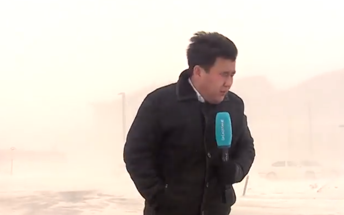 В сети появилось видео, как работали журналисты телеканала Qazaqstan в буран