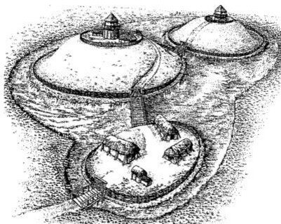 Начать разговор о средневековых замках стоит с того, что до X века каменных замков в Европе вообще не было! Строения VII - IX вв., часто именуемые подобным образом, на самом деле назывались castra adulterina, или же «поддельный замок». Представлял он из себя деревянное сооружение - сам «замок», который воздвигался на искусственной возвышенности, земляной насыпи. Насыпь, в свою очередь, по периметру очерчивалась частоколом. Иногда вокруг выкапывали еще и ров.