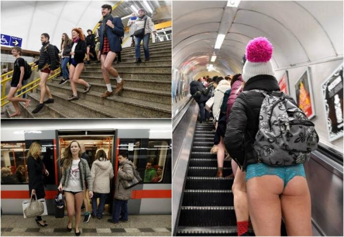 7 января по всему миру прошла 17-я акция "В метро без штанов". Странная ежегодная традиция, которая началась как небольшая шалость в Нью-Йорке почти шестнадцать лет назад, распространилась и проходит в более чем 660 городах. Несмотря на холодную погоду, люди спустились в метро без штанов в Нью-Йорке, Лондоне, Праге, Берлине, Мюнхене, Иерусалиме и многих других городах.