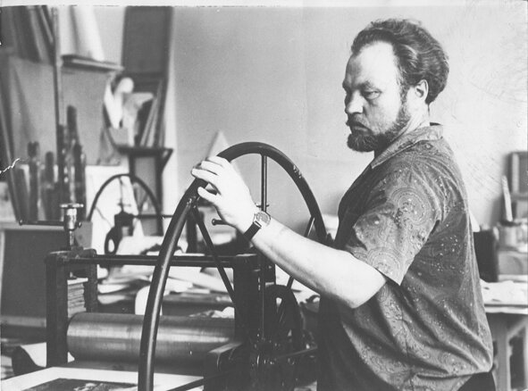 1959-1965 - годы учебы в Харьковском художественно - промышленном институте на факультете графики в мастерской М. З. Фрадкина. Дипломной работой начинающего художника были иллюстрации к роману писателя В.Я. Шишкова "Угрюм-река."