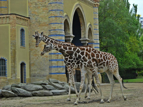 Жираф является самым высоким представителями отряда млекопитающих. Неудивительно, что в одном из лучших зоопарков мира живет целое семейство жирафов. Дом жирафов, похожий на восточный дворец в сине-песочной гамме, был сооружен в Берлинском зоопарке в конце 19 века. В сам дворец пройти конечно нельзя, но понаблюдать за жирафами в загоне можно всегда
