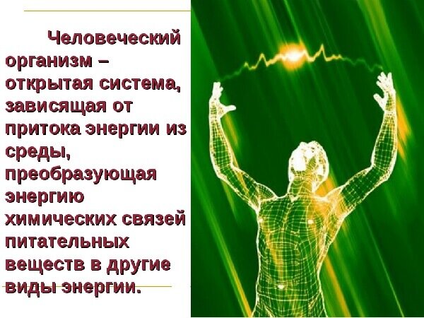 - Энергия организма человека
