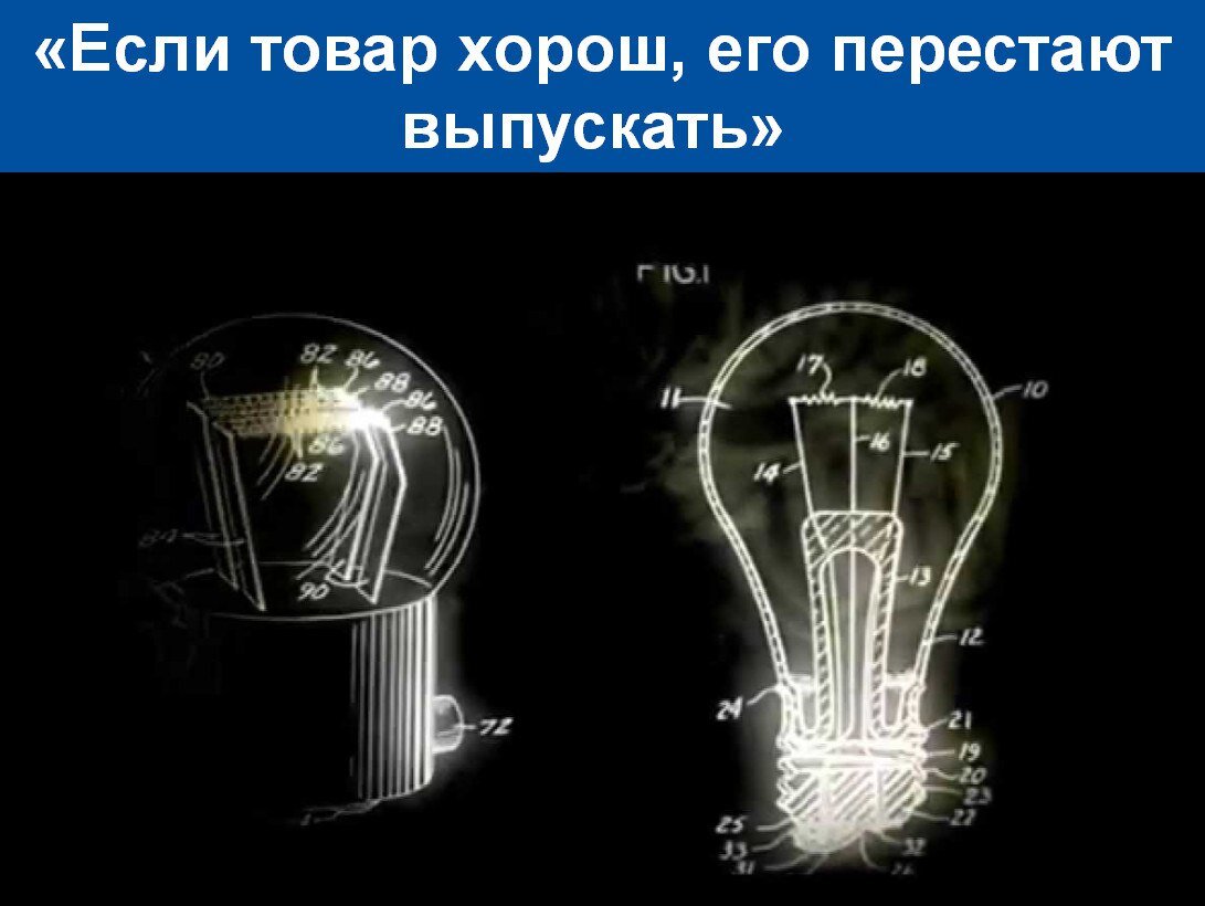 Первая электролампа Эдисона, появившаяся в продаже в 1881 году, была рассчитана на 1,5 тысячи часов работы, а к 1924 году срок её службы продлили до 2,5 тысяч часов. Однако «Феб» создал специальный комитет и целый бюрократический аппарат, который обязал производителей выпускать лампы, работающие не более тсячи часов. Те компании, которые не укладывались в эту норму, подвергались штрафованию со стороны картеля – и так до тех пор, пока мир не получил лампы ещё худшего качества, чем их изначальный прототип.