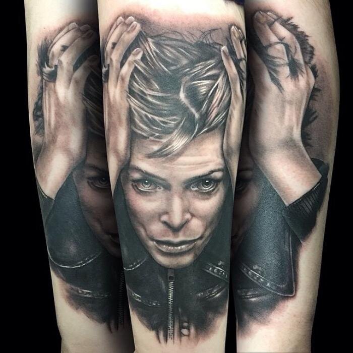 В искусстве татуировки существует целое направление, являющееся частью портретной живописи — рок-звезды, артисты и художники становятся центральными фигурами сюжетов тату. Дэвид Боуи, само собой, достаточно часто появляется на коже своих поклонников. Мы подобрали наиболее яркие и интересные примеры таких работ. Фото