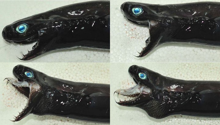Представители Тайваньского научно-исследовательского института рыболовства поймали на глубине 350 метров нескольких жуткого вида созданий, напоминающих монстров или пришельцев. Эти уникальные обитатели океана были открыты меньше 30 лет назад и до сих пор плохо изучены, сообщает Fox News. Вот так выглядит свежий улов тайваньских морских биологов. По словам ученых, "чудовища" являются представителями редкого вида "акул-гадюк" (Trigonognathus kabeyai), которые обитают на большой глубине и гибнут, если их поднять на поверхность. До конца неизвестно, почему это происходит, но биологи полагают, что из-за перепадов давления. Эти рыбы были открыты в 1986 году, однако описали их только в 1990-м. Наткнуться на акул-гадюк, купаясь в Тихом океане, невозможно – они не приближаются к поверхности воды ближе чем на 150 метров во время охоты. Длина тела "монстров" не превышает 50 сантиметров. Ученые говорят, что ночью акулы-гадюки способны светиться, чтобы лучше видеть добычу.