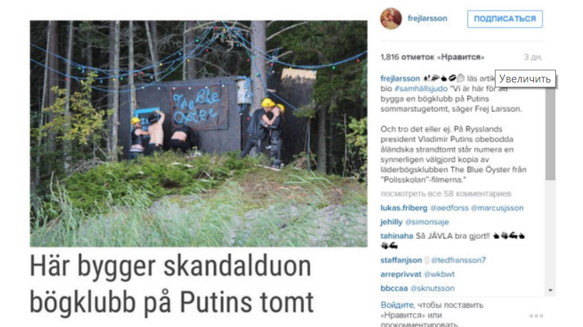 Суд Аландского острова на Финляндском юго-западе окончательно отклонил иск от Российских властей против 34-летнего гей Фрея Ларссона (Frej Larsson) и 39-летнего сожителя Саймона Гарденфорса (Simon Gardenfors). В далеком 2015 году экс участники шведского дуэта "Far & Son" из подручных материалов соорудили уютный бар для секс-меньшиств, на одном из Аландских островов в Балтийском море, на земле, находящейся под управлением самой Администрации президента РФ. По всей видимости создали они его, для того, что- бы досадить Владимиру Владимировичу Путину, действующему президенту России, который, по их мнению, ведет очень гомофобную политику в отношении своих сограждан. "Оправдан!" - сообщил Гарденфорс в своем "Инстаграме", размесив победную фотографию, собравшую более 5000 лайков.