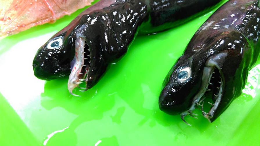 Необычный вид или странное поведение животных часто привлекают внимание ученых и обывателей. О том, какие необычные животные были замечены в 2017 году -- в нашем материале. Акула-«Чужой» Ученые из Исследовательского института рыболовства на Тайване в декабре 2017 года выловили у берегов острова пять особей акулы редкого вида Trigonognathus kabeyai, сообщает местное издание Taiwan News. Вид был открыт в Японии в 1986 году, но с тех пор исследователи видели их лишь несколько раз. Треугольные челюсти акулы выдвигаются вперед как у пришельца из фильма «Чужой». Длинными тонкими зубами она хватает добычу и заглатывает ее целиком. Акула питается в основном костистыми рыбами и способна проглотить рыбу длиной до 40% от собственного тела. Trigonognathus kabeyai обитают в северо-западной части Тихого океана. Днем они держатся ближе ко дну, ночью поднимаются к поверхности воды. Самой крупной из пойманных акул за все время изучения оказалась самка длиной 54 см и весом 0,76 кг. Трехногая рыба В де