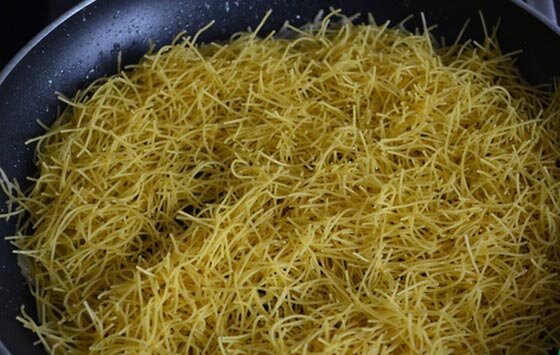 1. Берешь сковородку и вываливаешь туда сухие макароны