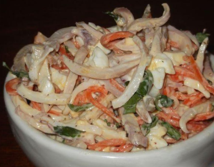 Салат с кальмарами и корейской морковью. Просто, но очень вкусно!