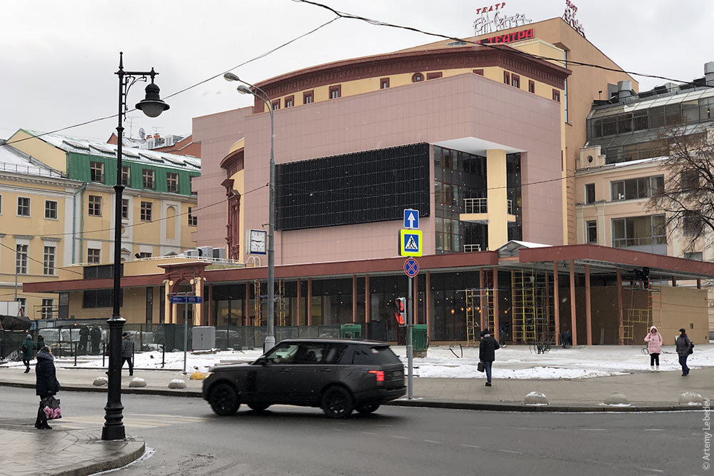 Прошло двадцать лет и говно решили зарифмовать. С противоположной стороны площади вдруг на месте так и не родившегося сквера начал извергаться казалось бы застывший вулкан пиздеца - театр Калягина. Одно из самых уебанских зданий в Москве, которое было видно только из переулка, вдруг увеличилось в два раза и обрело новый фасад на площади. И теперь все москвичи и гости столицы будут вынуждены этот сарай из Нового Уренгоя наблюдать прямо на выходе из станции метро "Чистые пруды".