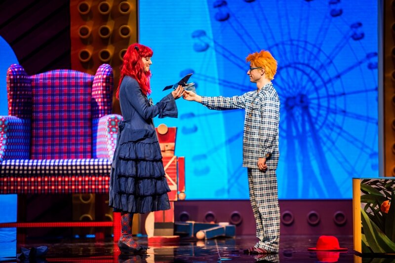 «Синяя синяя птица» в Театре Наций — это настоящая феерия. Был такой театральный жанр с превращениями и техническими чудесами, популярный как раз во времена, когда Метерлинк писал свою знаменитую символистскую сказку. Но у каждого времени свои сюжеты и герои. От прежней «Синей птицы», поставленной сто лет назад самим Станиславским, а сейчас идущей во МХАТе имени Горького, в новой версии почти ничего не осталось. Нет душ вещей, нет феи Берилюны, кошки и собаки… Новая история рассказывает про девочку Матильду, которая проходит путь взросления от полного эгоизма к самопожертвованию и пониманию, что есть на свете вещи поважнее развлечений и удовольствий. По сюжету бабушка посылает внучку (ее по очереди играют молодая актриса и певица Муся Тотибадзе и Дарья Макарова) в лавку за лекарством для маленького брата, а ей страшно хочется на ярмарку, где карусели и сладкая вата… У девочки налицо подростковый кризис: все кругом враги, никто не понимает, а этого маленького сопливого